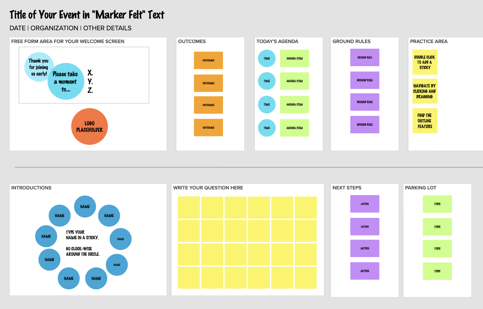Before you start designing your whiteboard, make sure it’s the right tool for your meeting and participants. Online whiteboards are great collaboration tools, but they take time to feel comfortable with, both as a facilitator and as a participant. Start with your design and participants in mind.